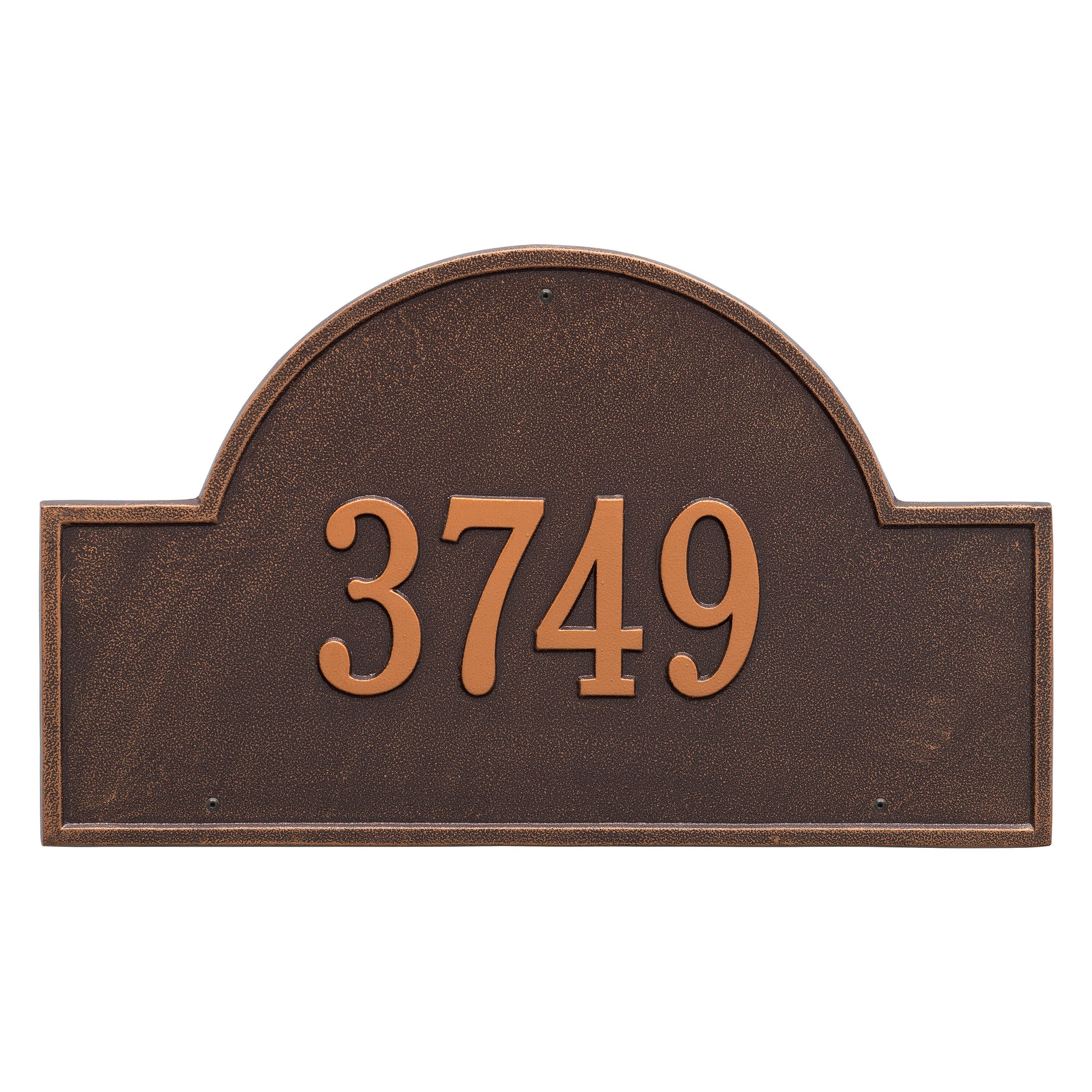 The Whitehall Products Arch Marker Address Plaque will accentuate your home's exterior with elegance. The address plaque is made from rust-free cast aluminum providing excellent quality. The plaque has a stylish arch shape.