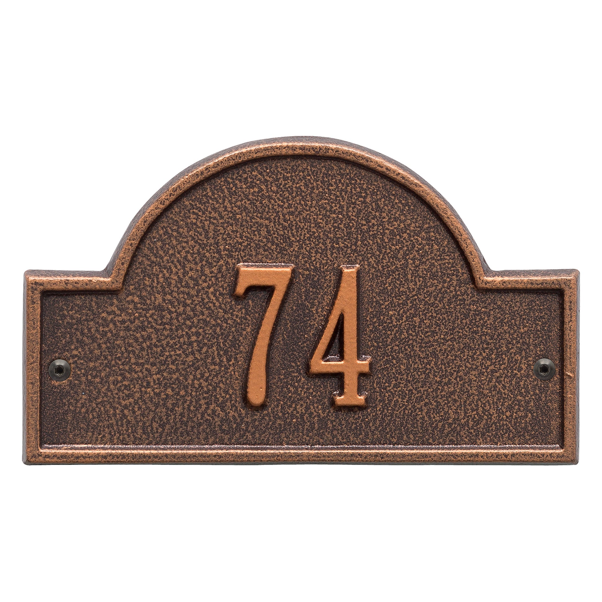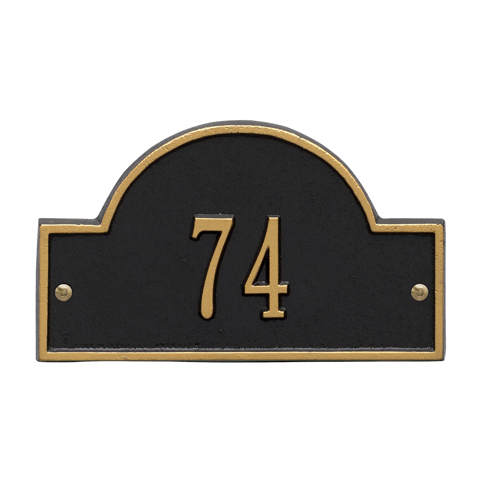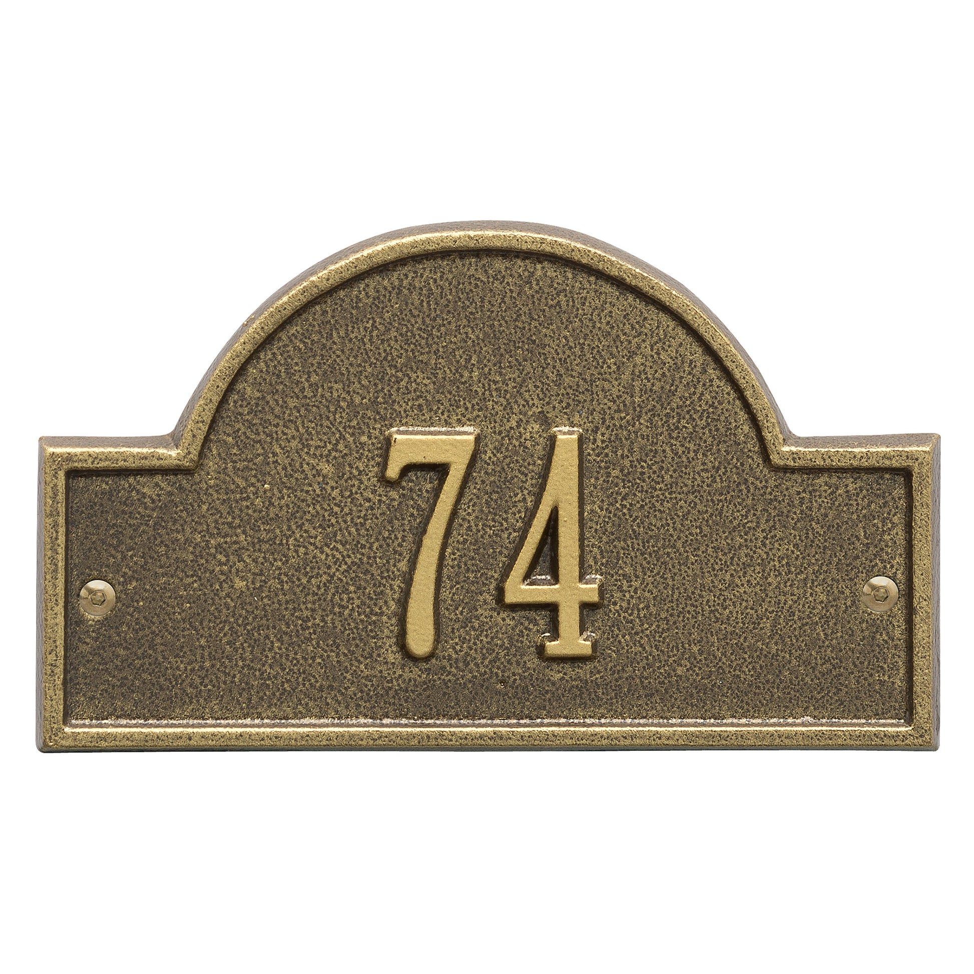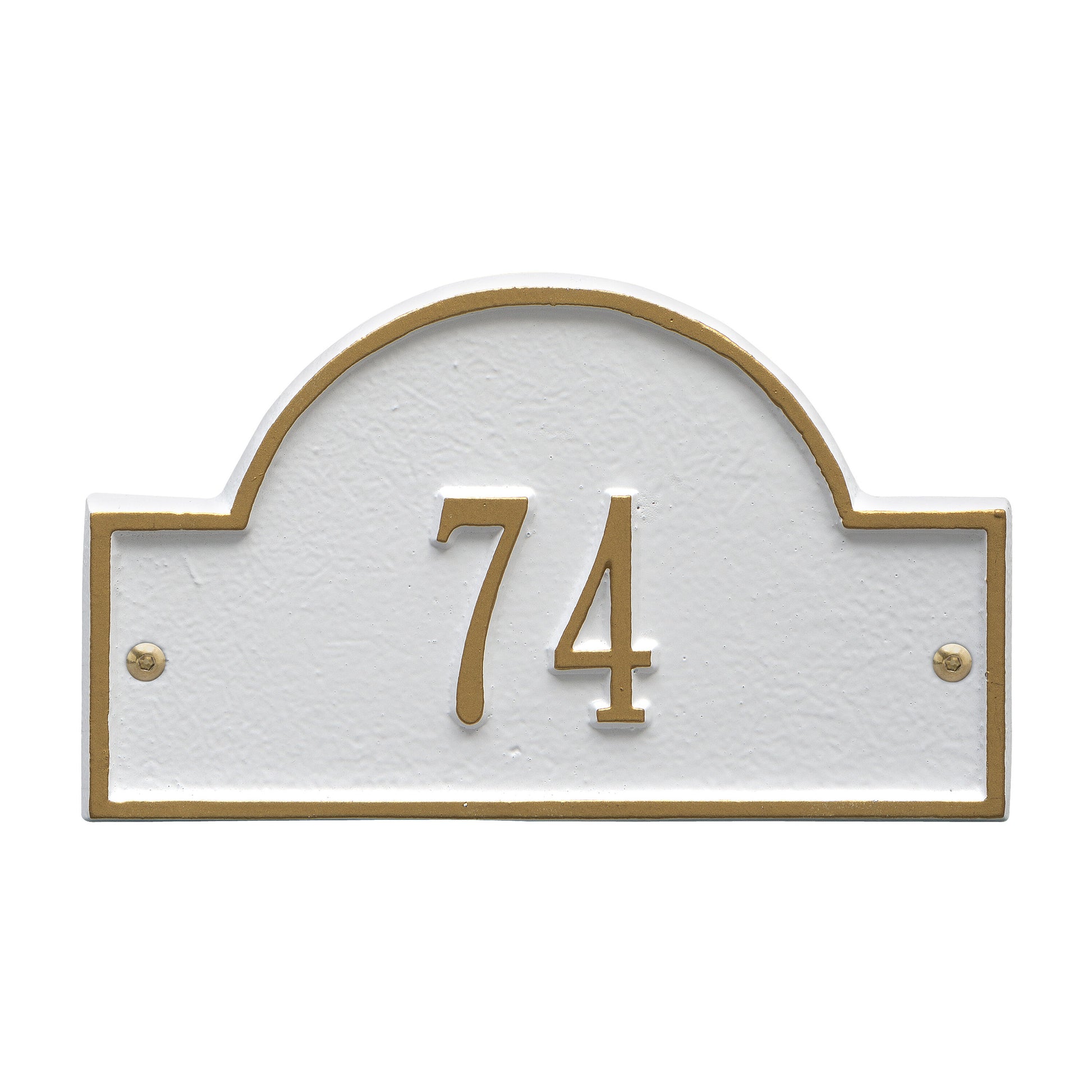 The Whitehall Products Arch Marker Address Plaque will accentuate your home's exterior with elegance. The address plaque is made from rust-free cast aluminum providing excellent quality. The plaque has a stylish arch shape.