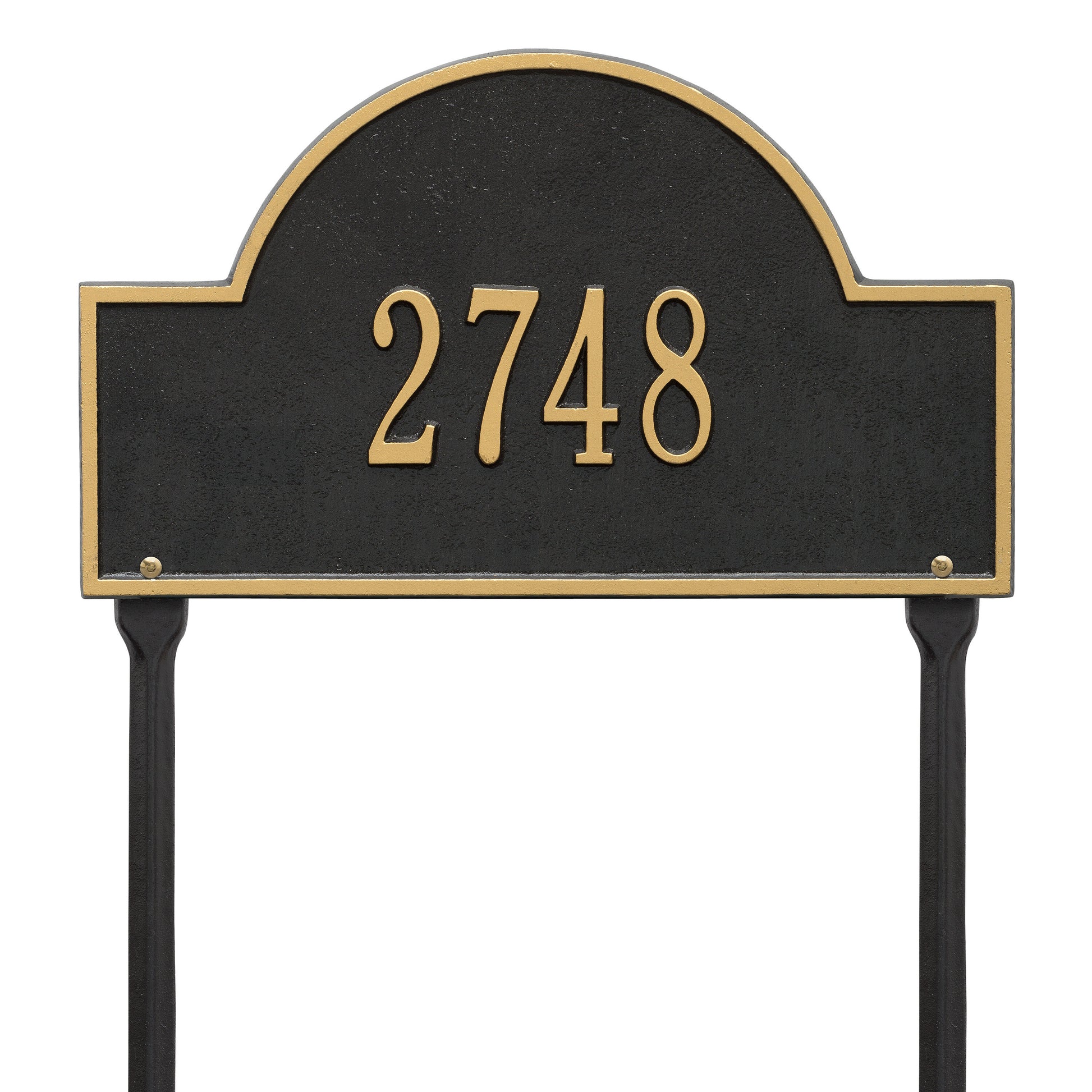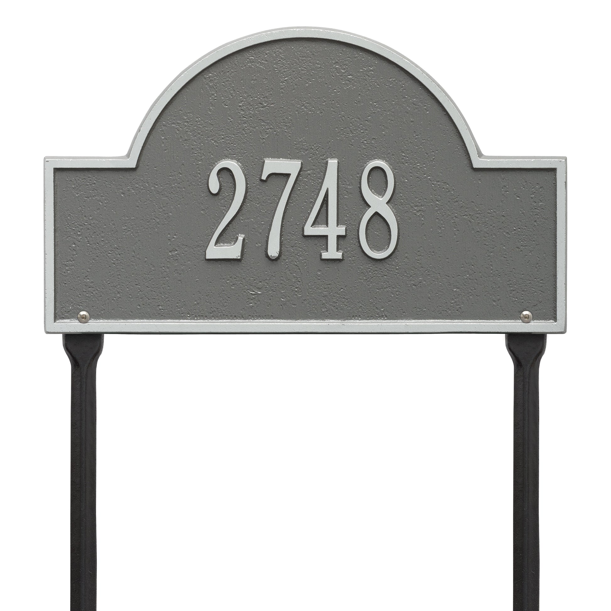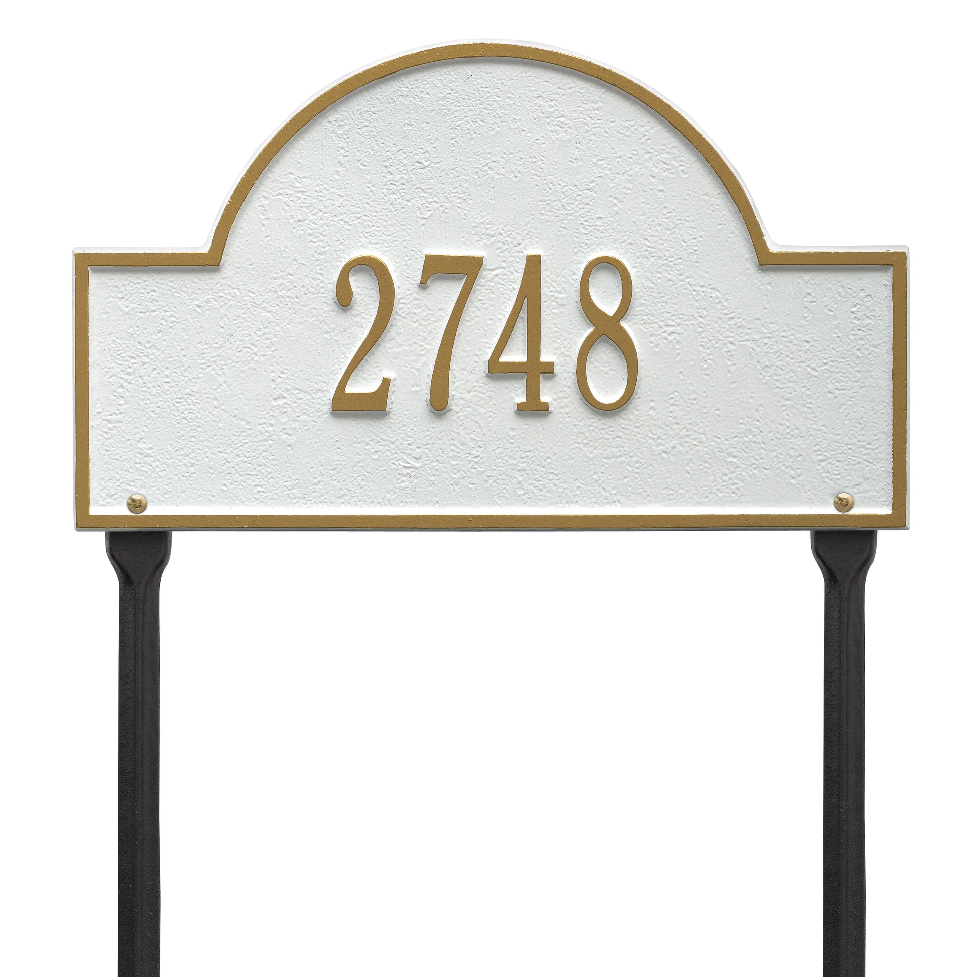 The Whitehall Products Arch Lawnr Address Plaque will accentuate your home exteriors with its elegance. The address plaque is made from rust-free cast aluminum providing excellent quality. The plaque has a stylish arch shape.
