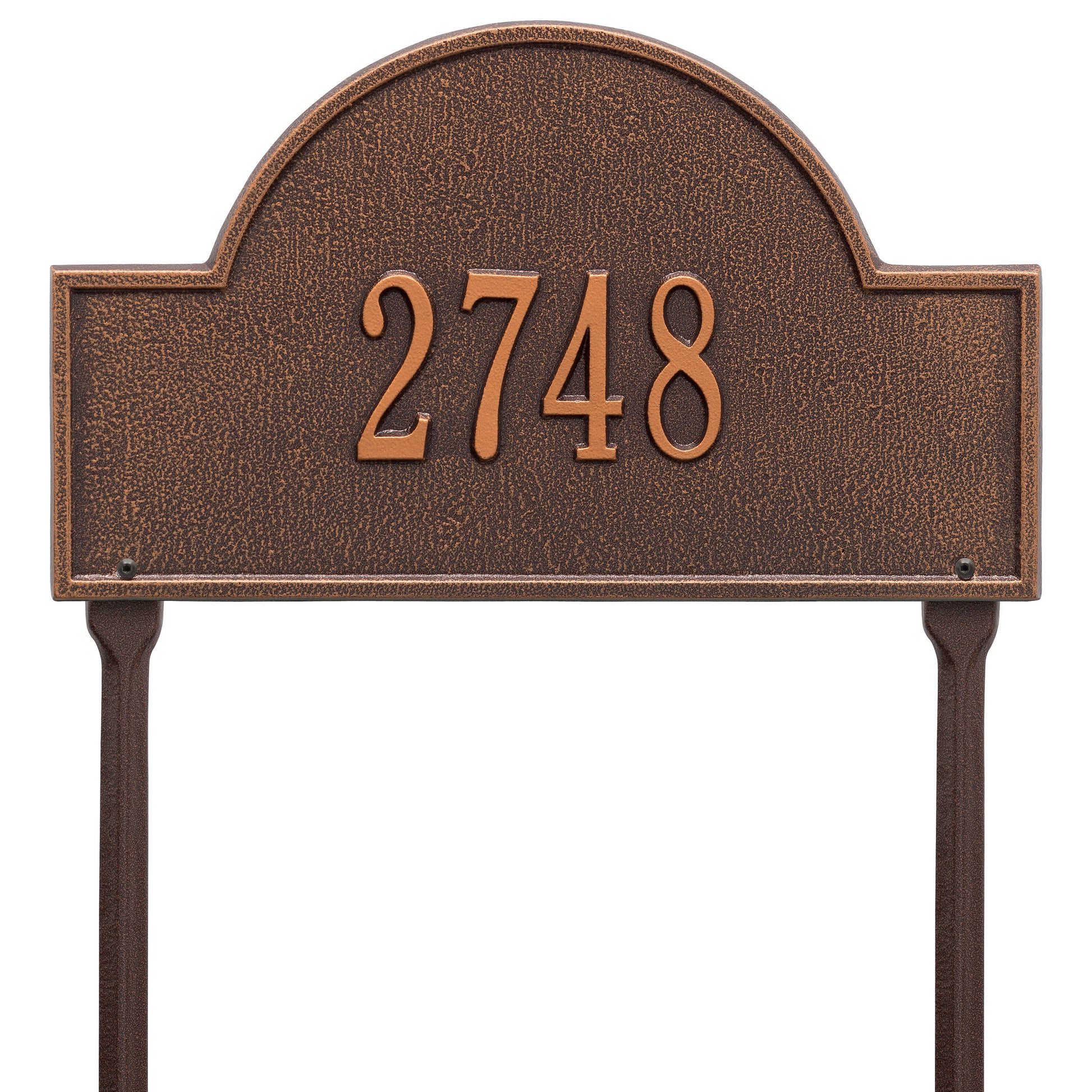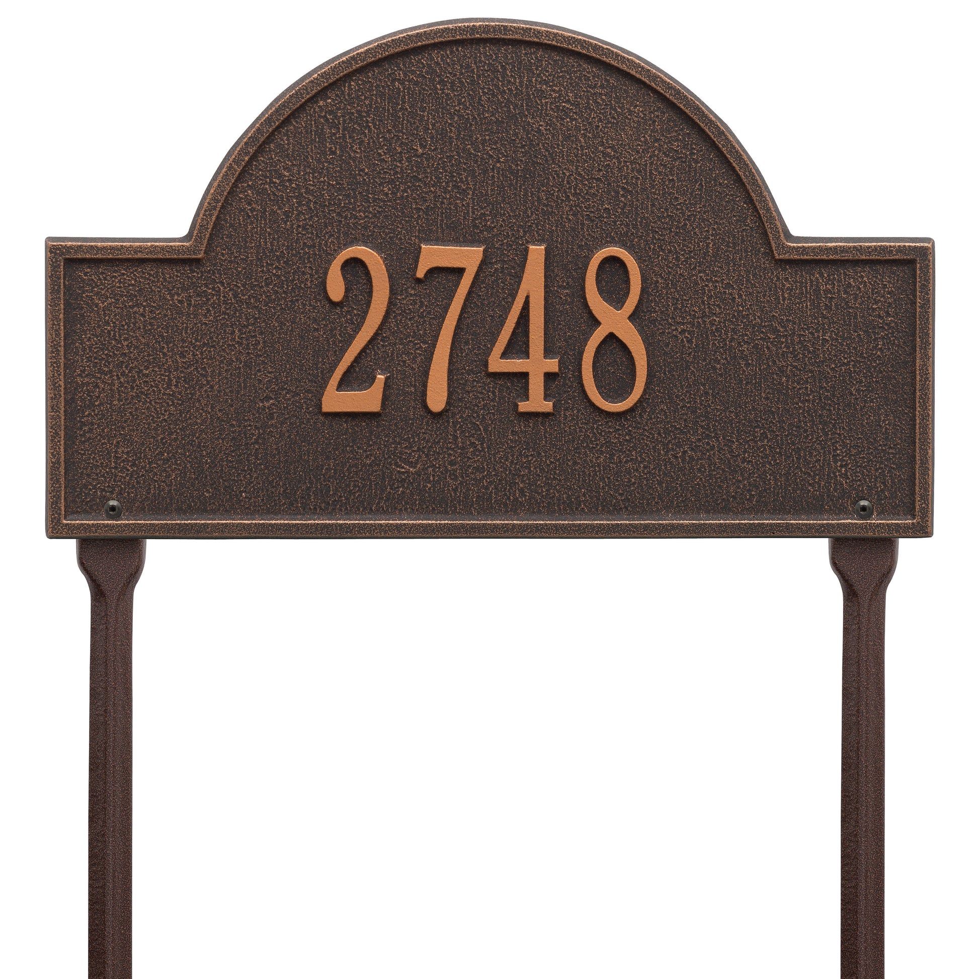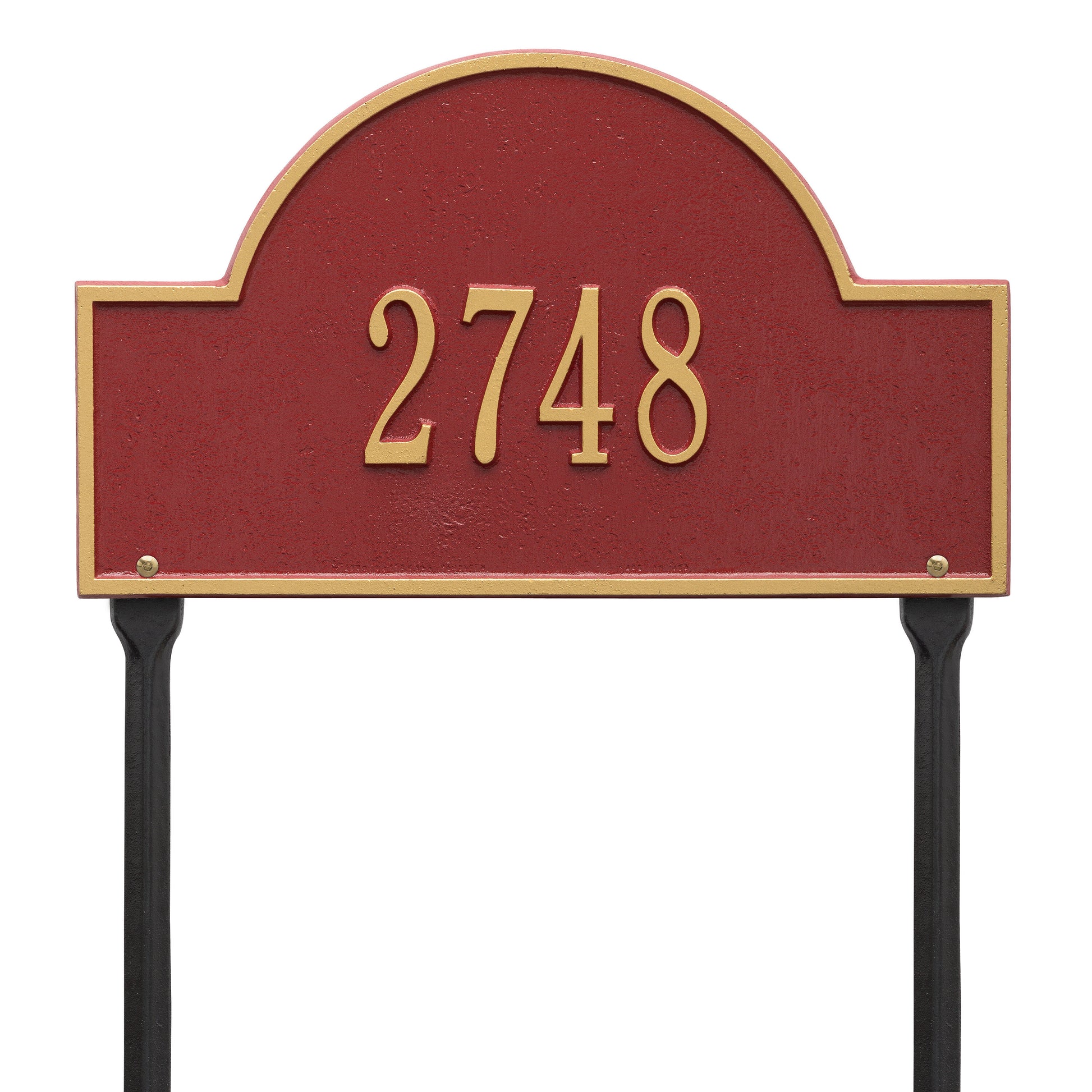 The Whitehall Products Arch Lawnr Address Plaque will accentuate your home exteriors with its elegance. The address plaque is made from rust-free cast aluminum providing excellent quality. The plaque has a stylish arch shape.
