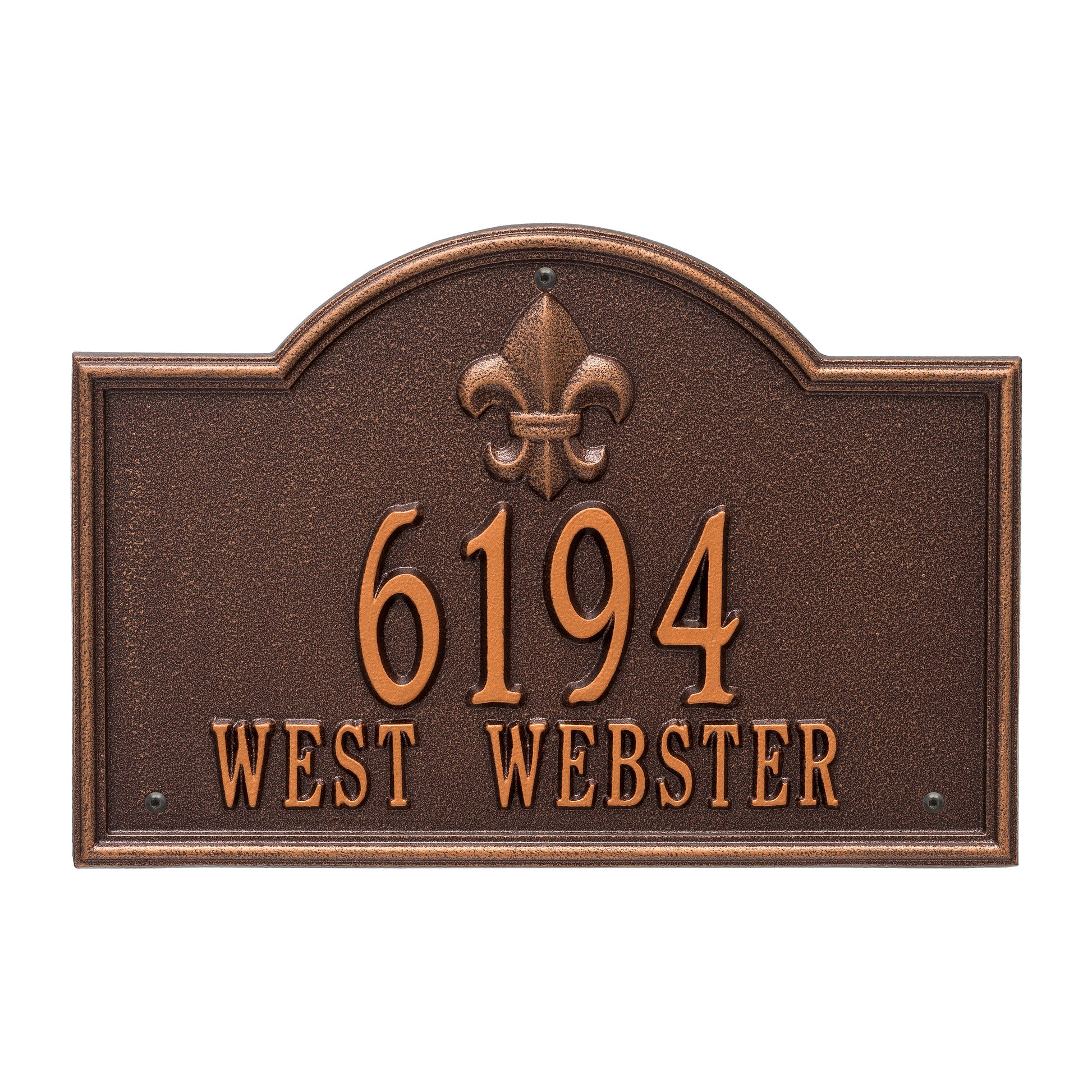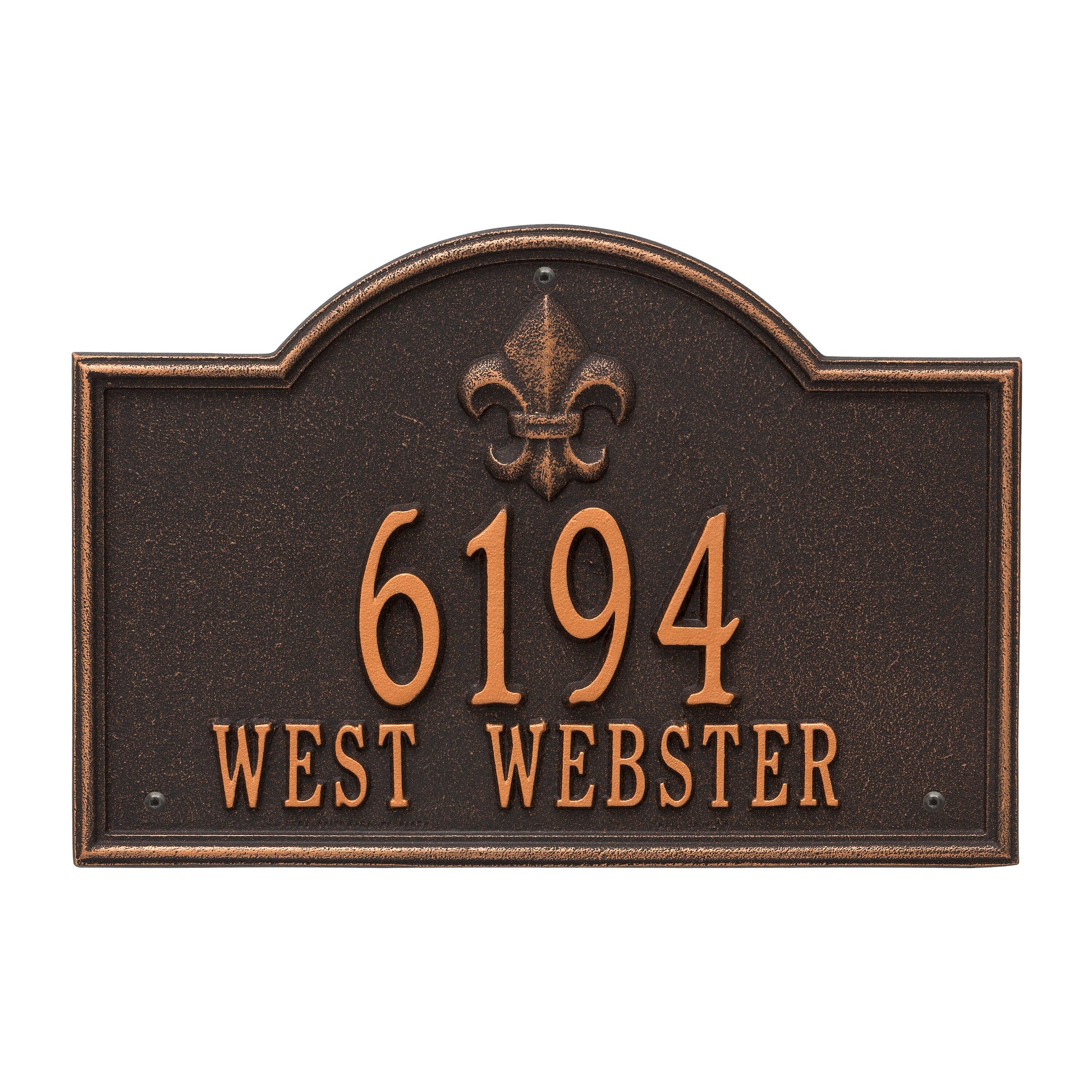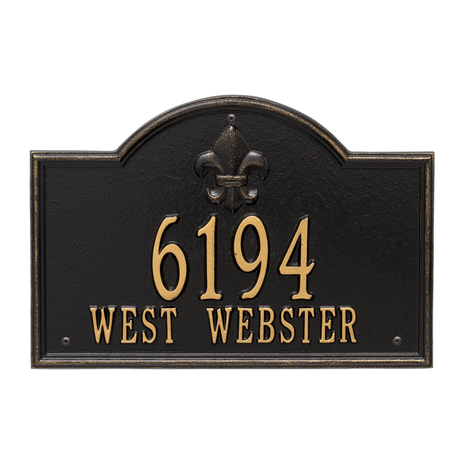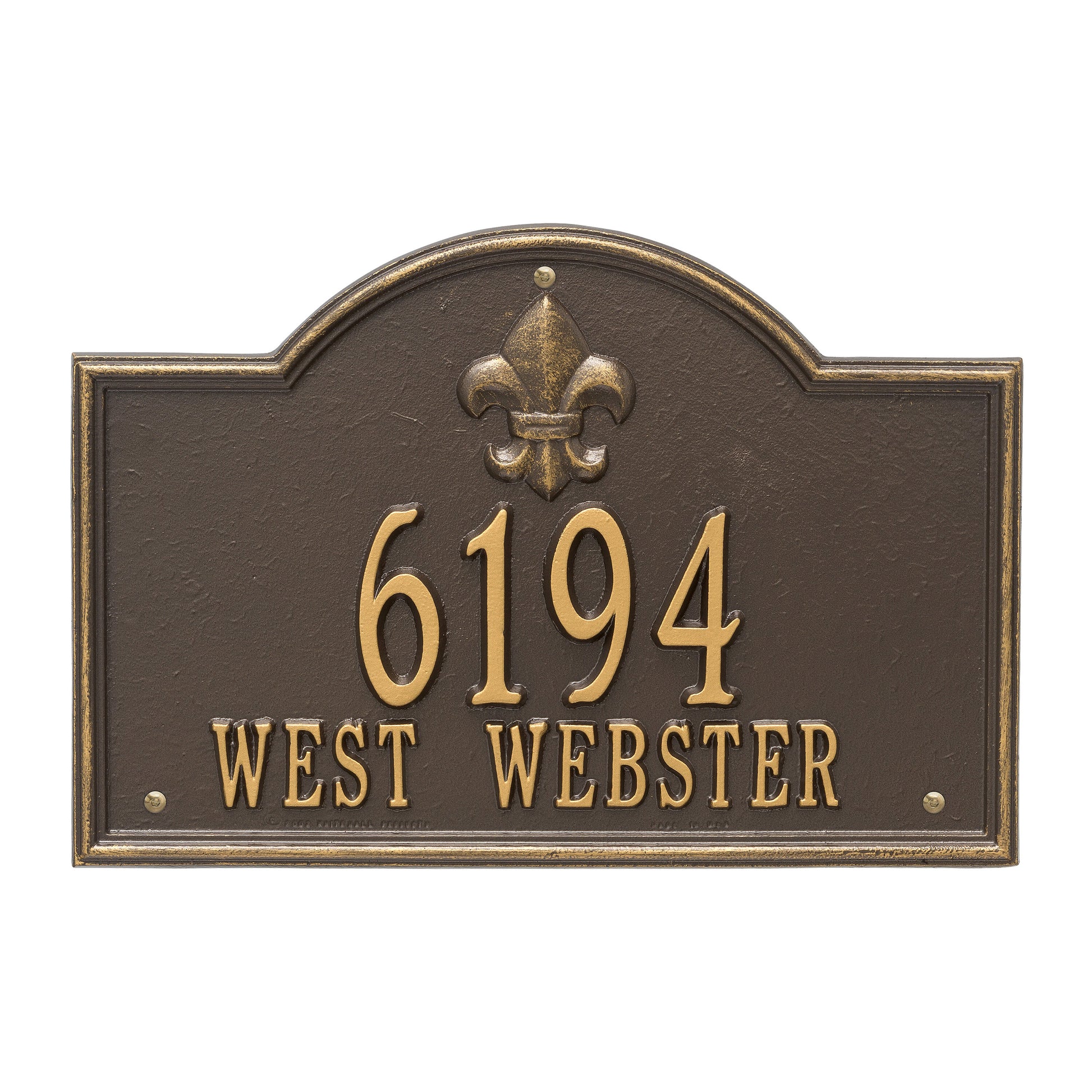 The fleur-de-lis emblem on this personalized address sign creates a distinctive style reminiscent of French Country and New Orleans. The Bayou Vista house numbers plaque will provide a boost to the curb appeal of your home. Home address plaques also make great gifts for any special occasion.