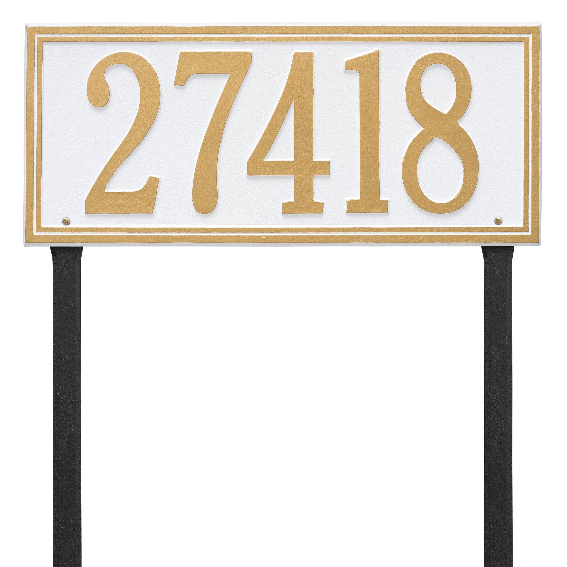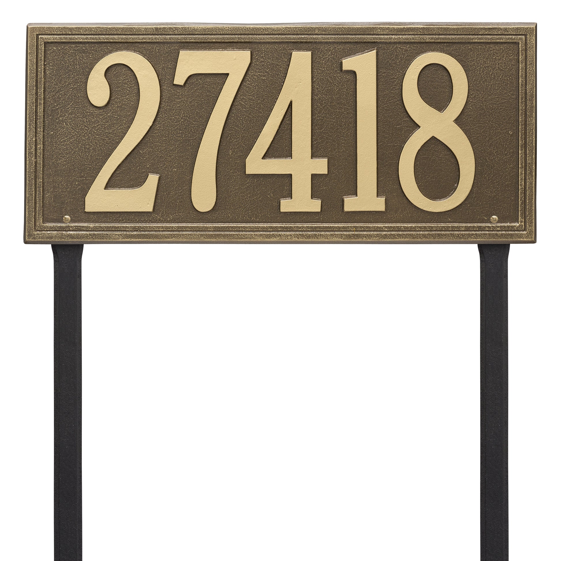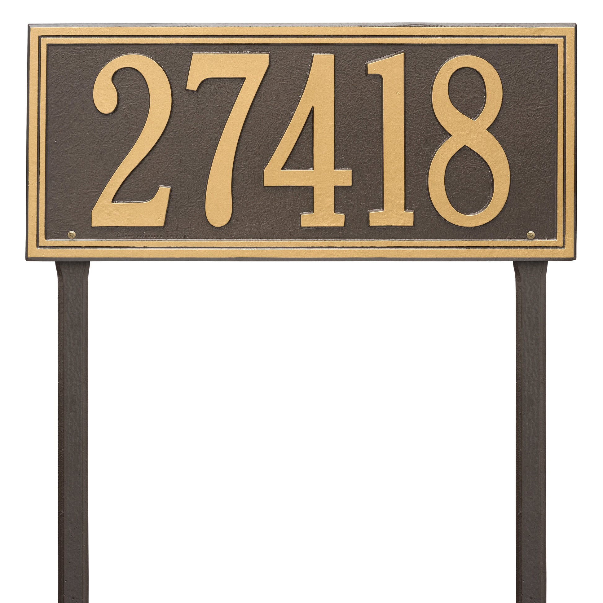 Handcrafted with pride using rust-free cast aluminum, this lawn plaque is built to withstand everything from scorching summers to winter snowdrifts. It undergoes a meticulous finishing process, featuring a weather-resistant coating and permanently cast, raised lettering for exceptional readability and aesthetic appeal. Every detail has been carefully considered, from the classic frame design to the decorative double line border - because nothing says "curb appeal" quite like an address plaque that looks like it belongs on a manicured estate lawn.