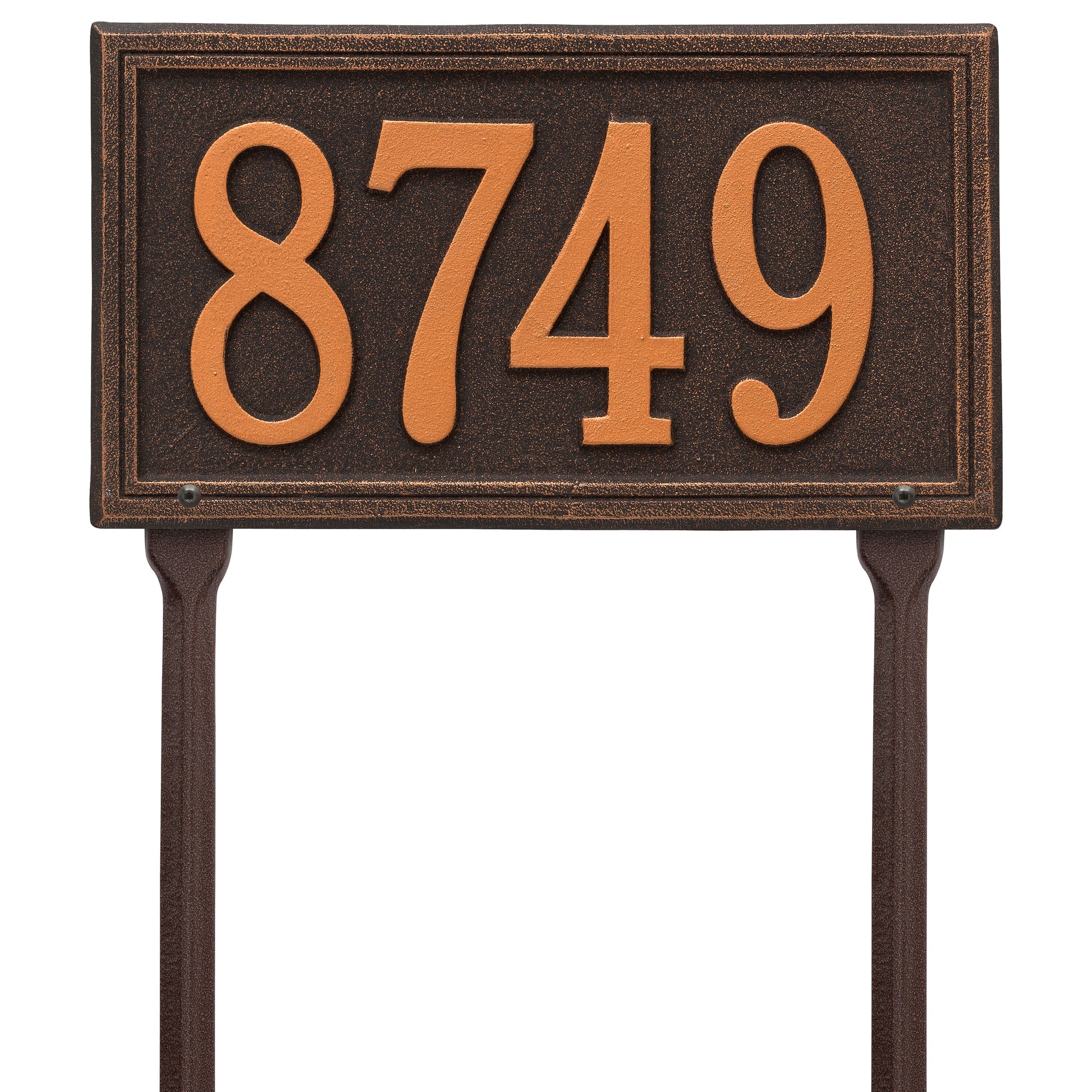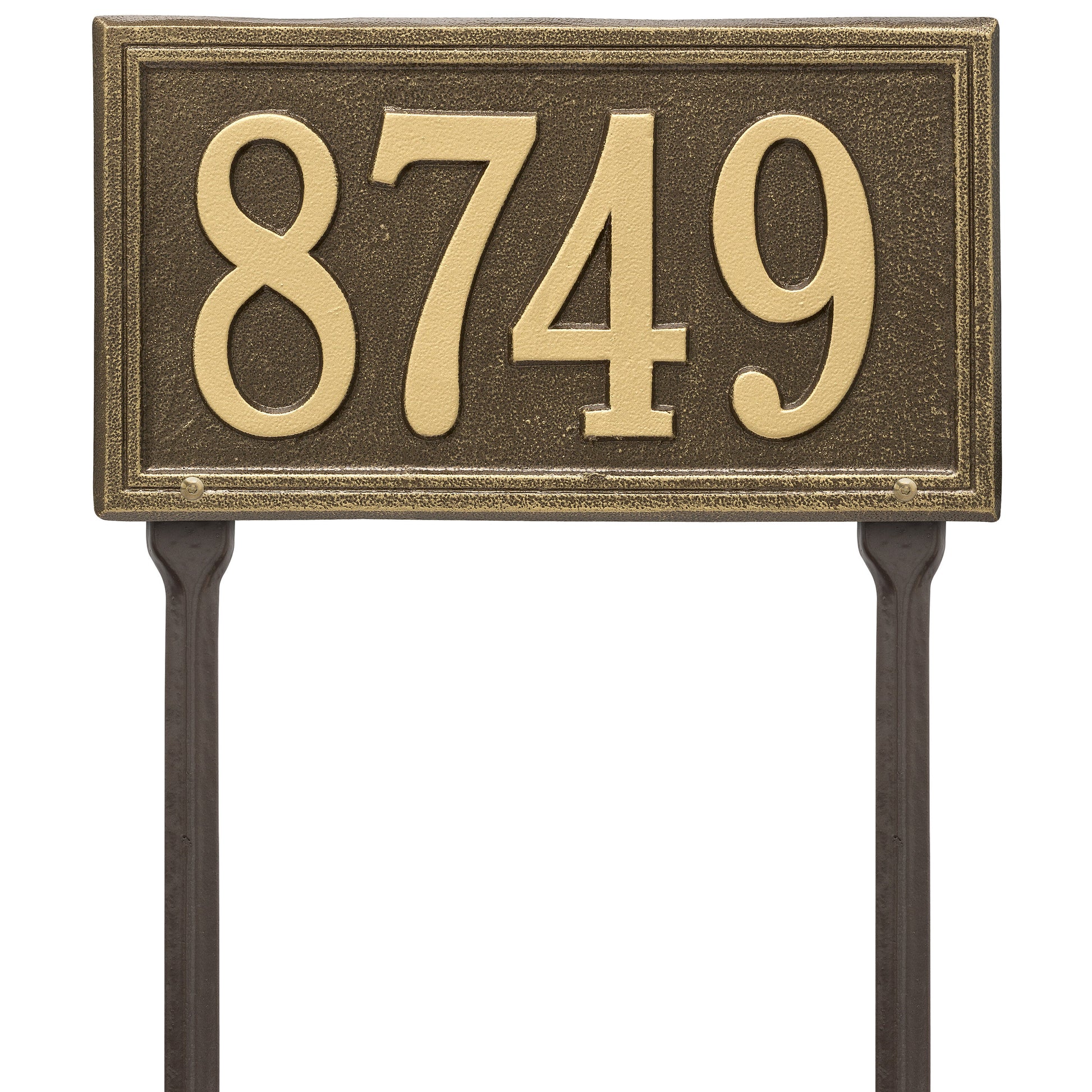 Handcrafted with pride using rust-free cast aluminum, this lawn plaque is built to weather everything from spring showers to autumn leaves. It undergoes a meticulous finishing process, featuring a weather-resistant coating and permanently cast, raised lettering for exceptional readability and aesthetic appeal. Every detail has been carefully considered, from the classic frame design to the decorative double line border - because nothing says "I care about the details" quite like an address plaque that looks like it belongs in a home decor magazine.