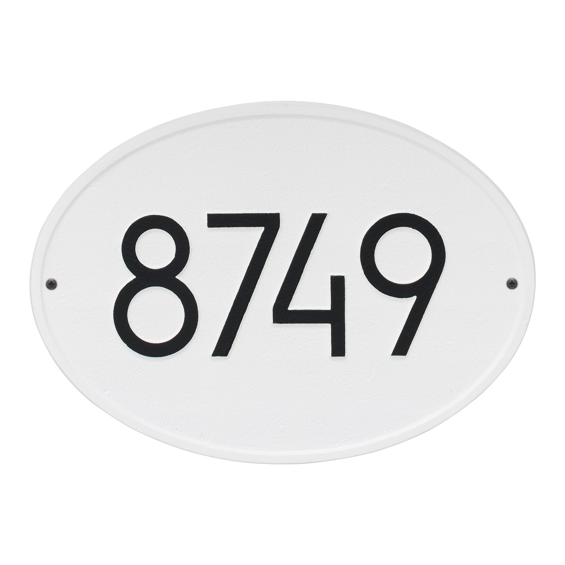 The plaque, my love, can accommodate four numbers, each standing a proud four inches tall. No longer shall our guests squint and stumble in the twilight, searching in vain for our threshold. This beacon of modernity shall guide them true.