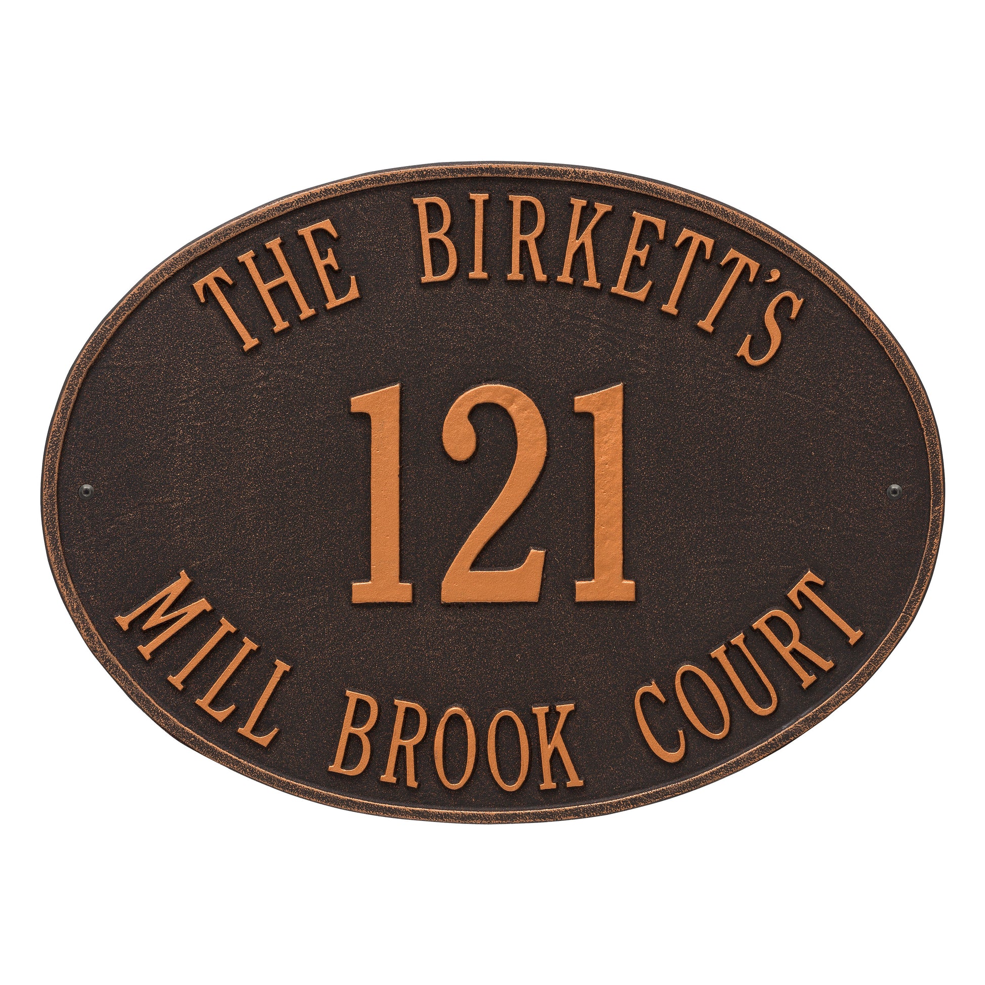 The classic oval design of our Hawthorne Address Plaques makes it ideal for most any home's exterior. Available in a variety of finish colors to accommodate your outdoor color scheme.