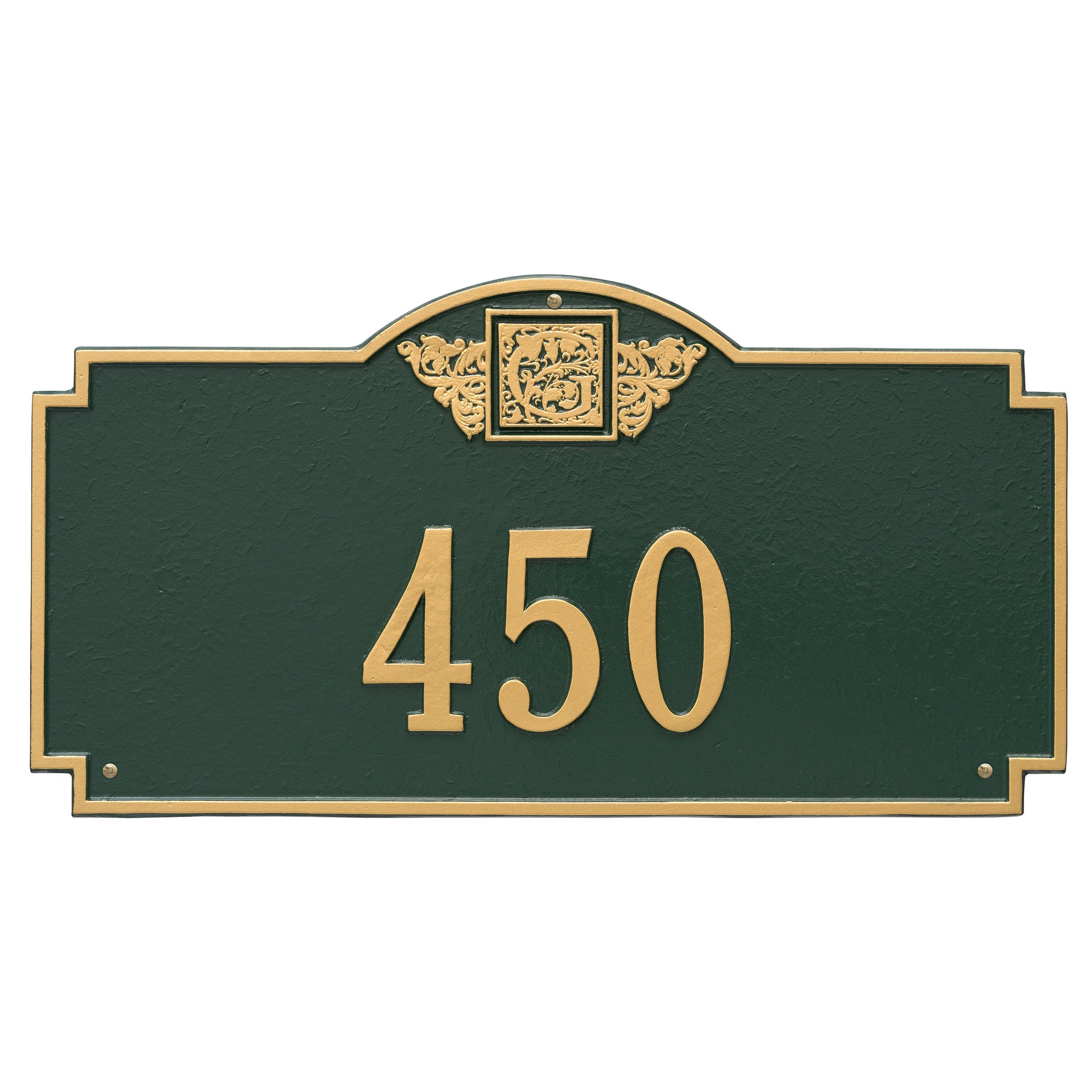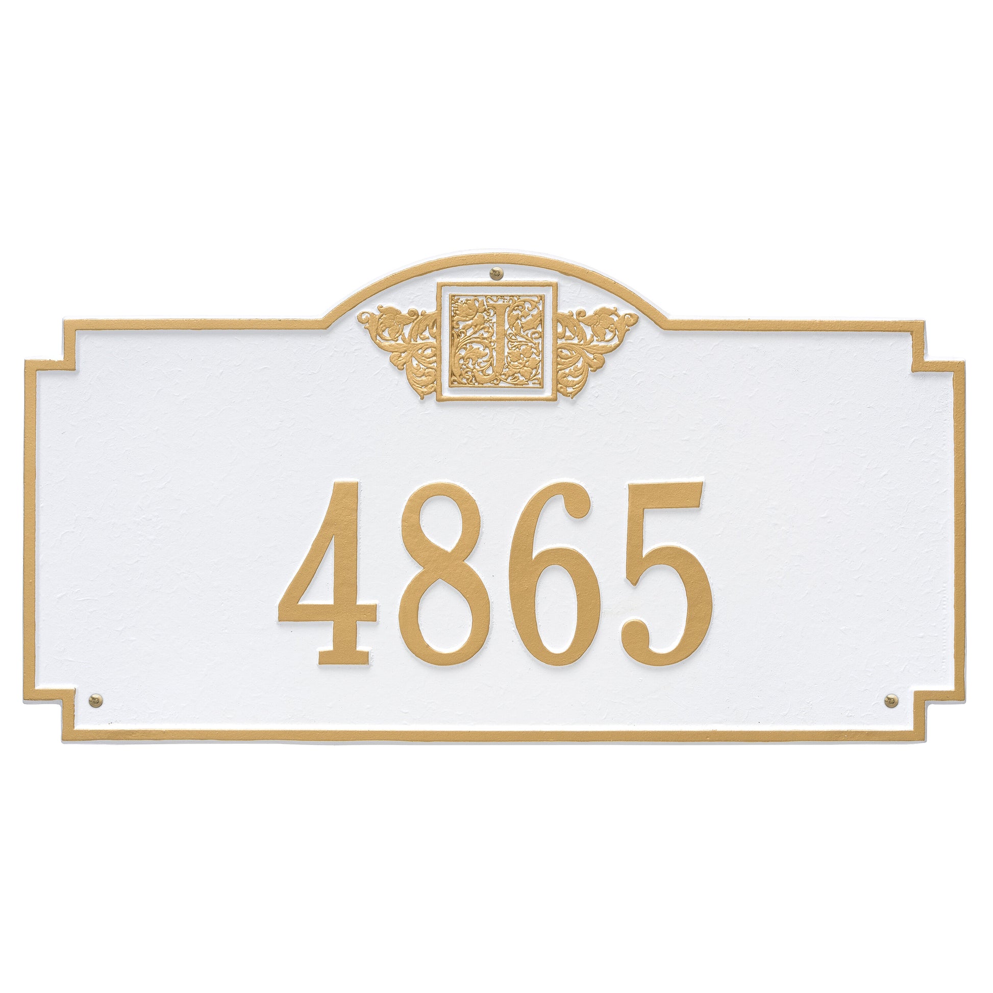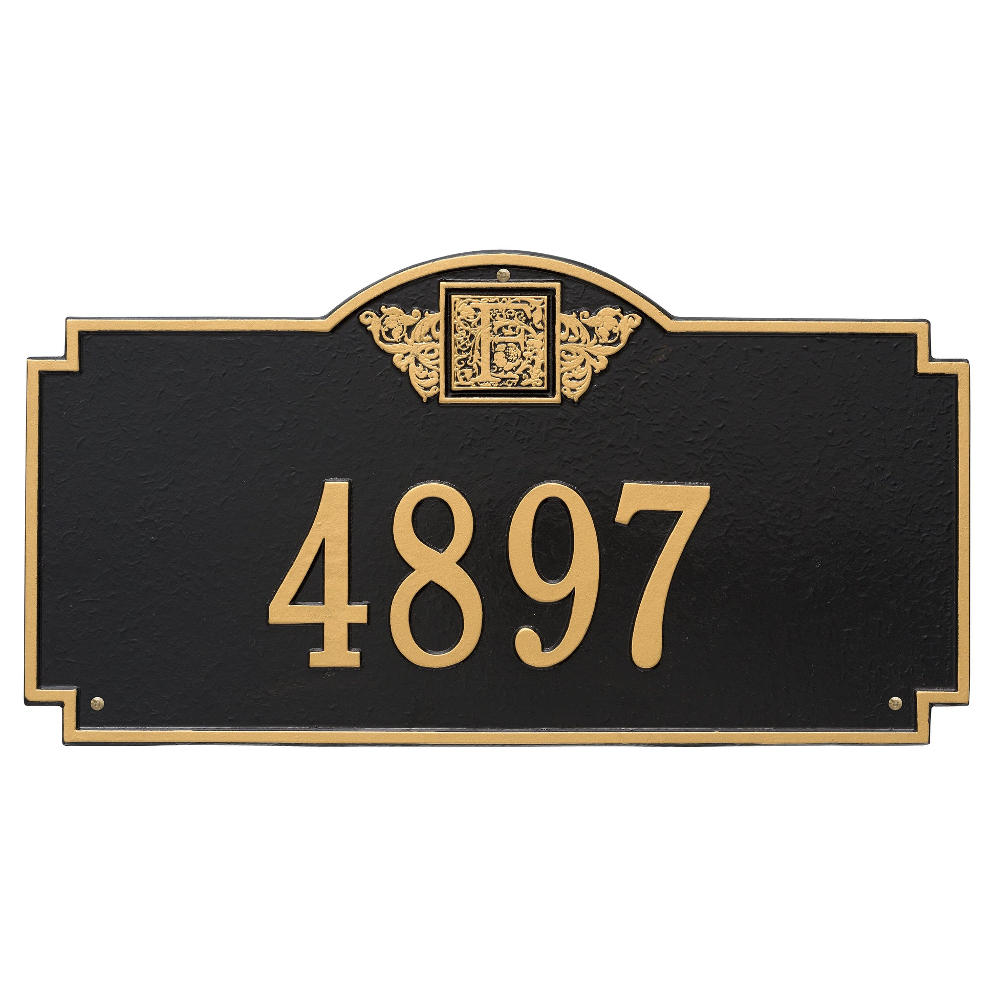 The Whitehall Products Monogram Estate Address Plaque lends a classic vintage look to your home. The lightweight rust-free aluminum is handcrafted to make this elegant address plaque. The plaque has weather resistant paints that provide a long life.
