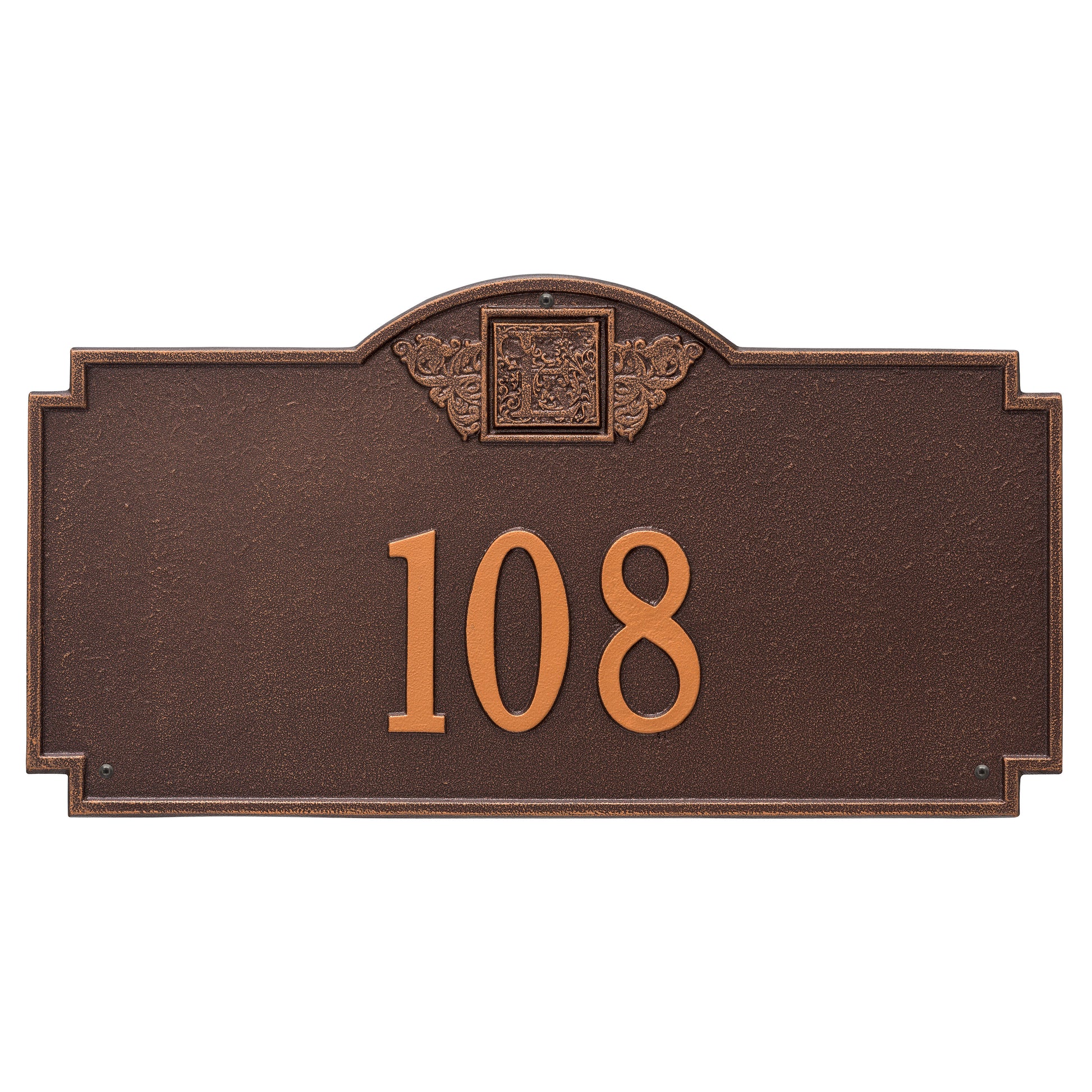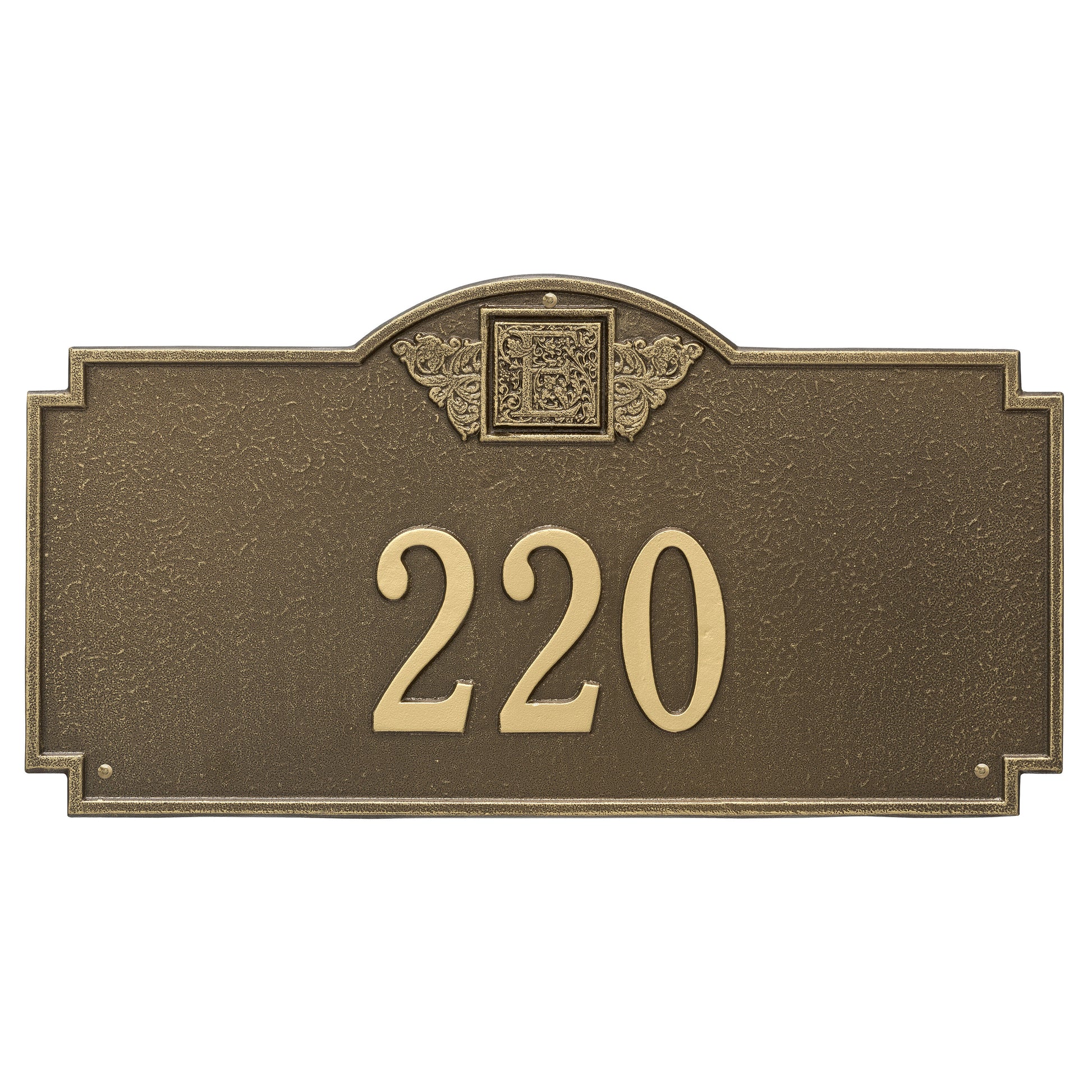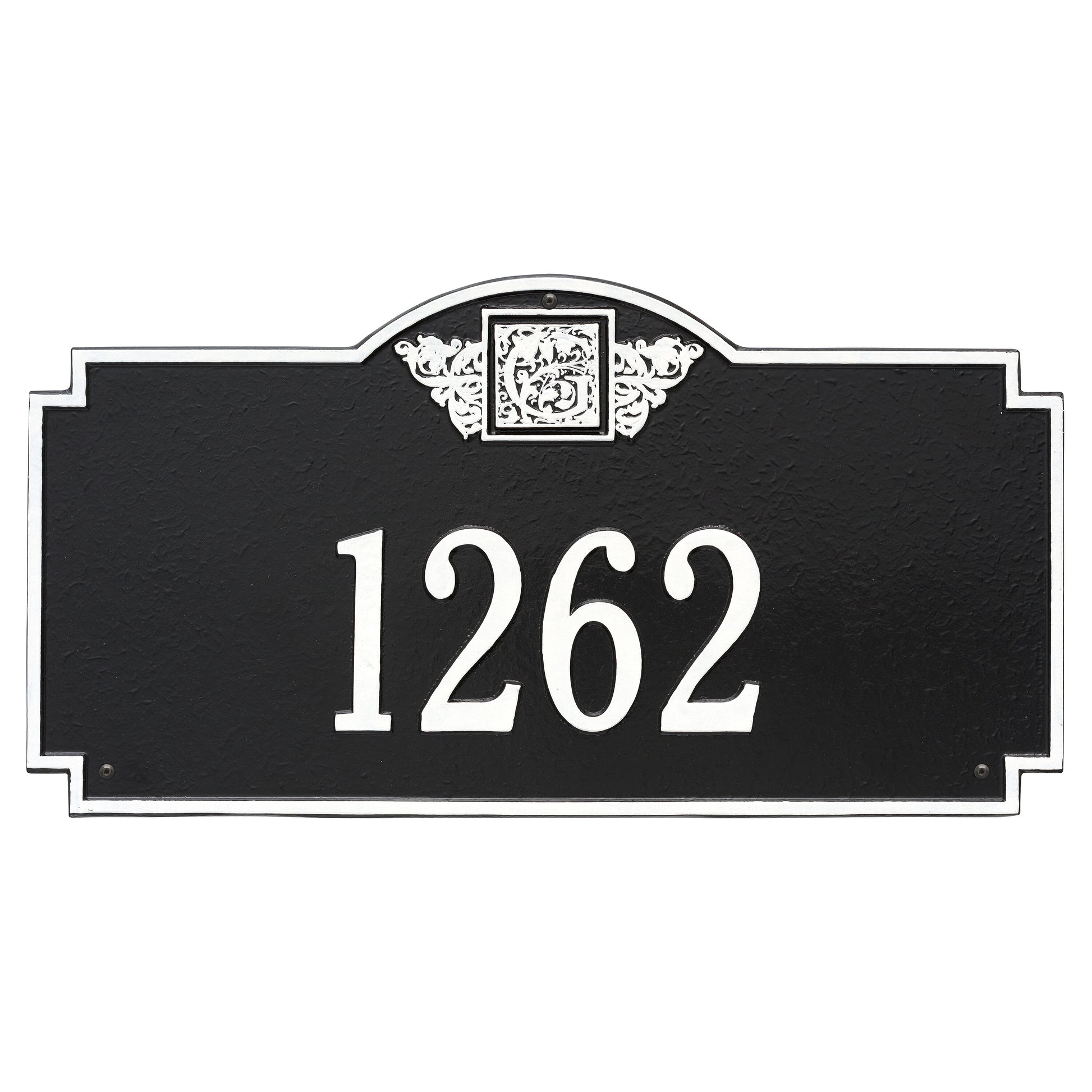 The Whitehall Products Monogram Estate Address Plaque lends a classic vintage look to your home. The lightweight rust-free aluminum is handcrafted to make this elegant address plaque. The plaque has weather resistant paints that provide a long life.
