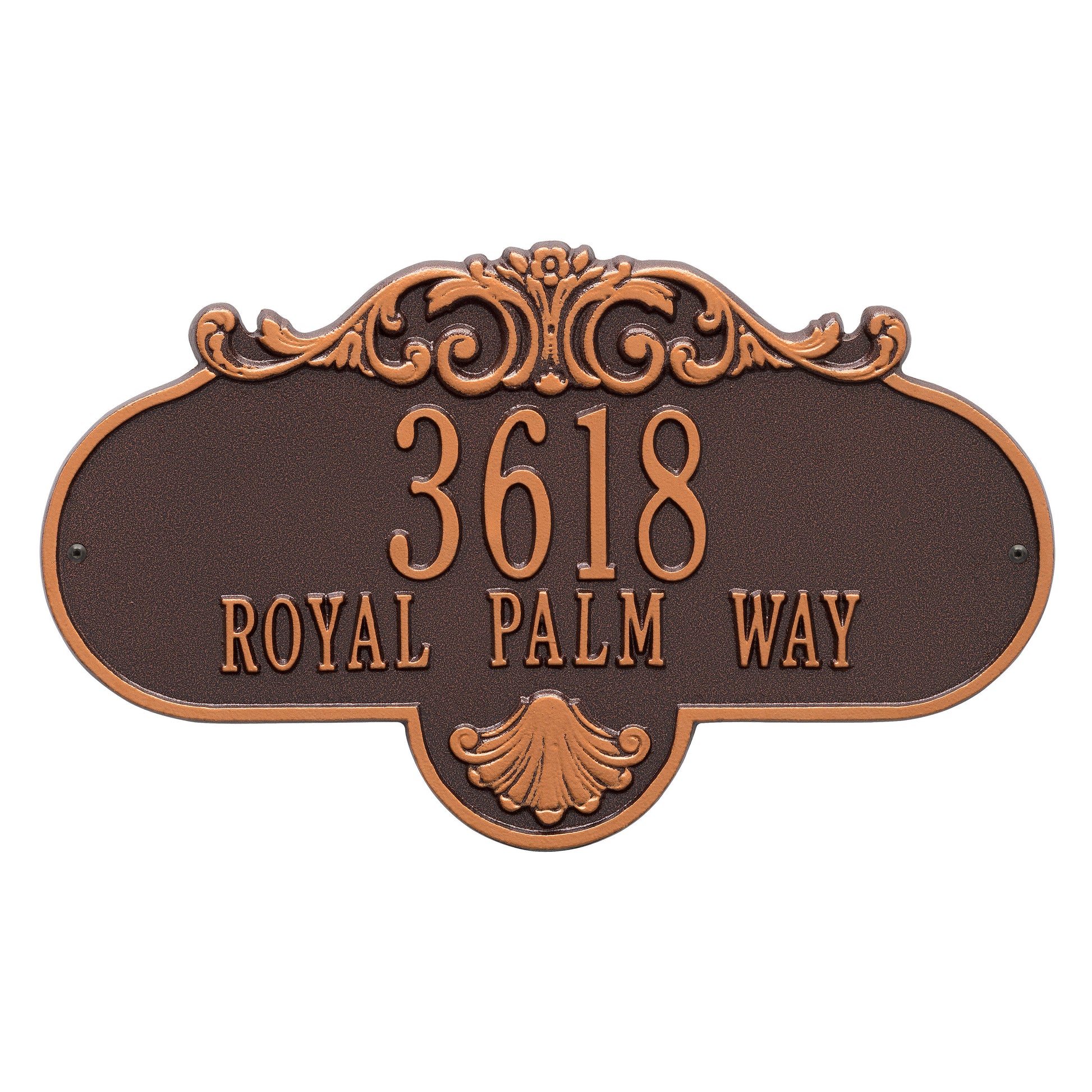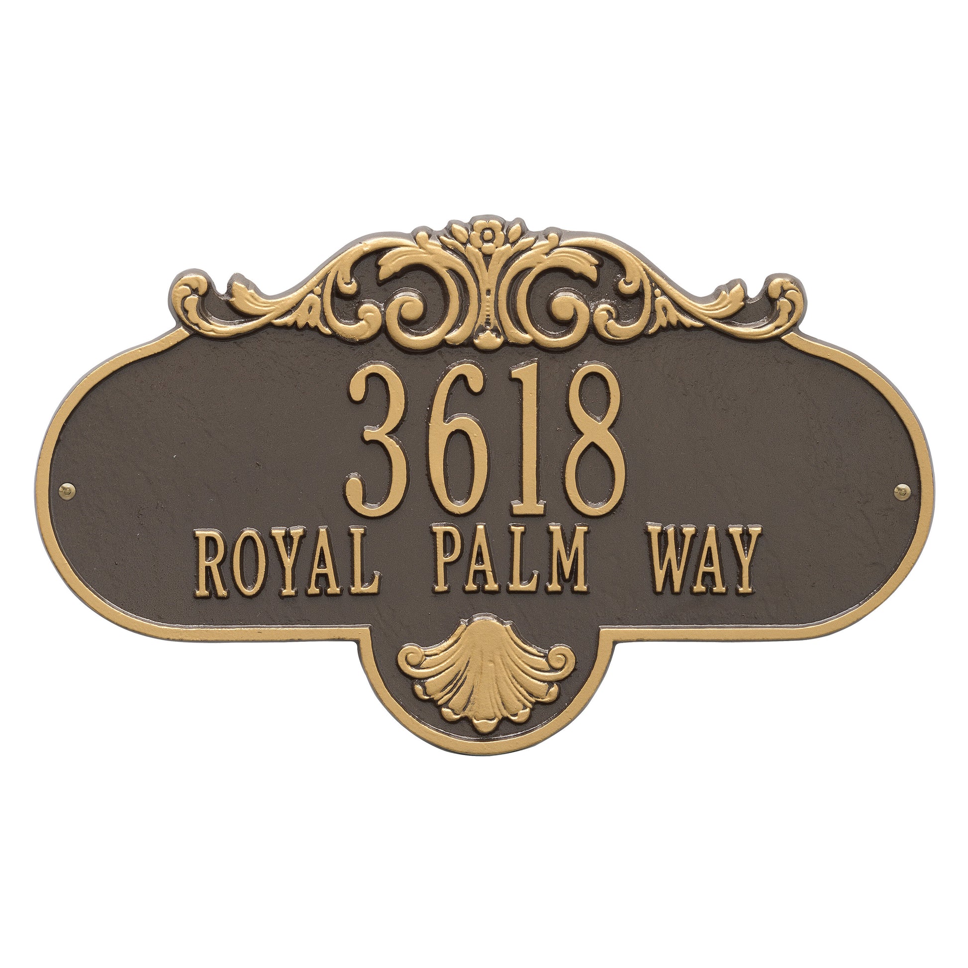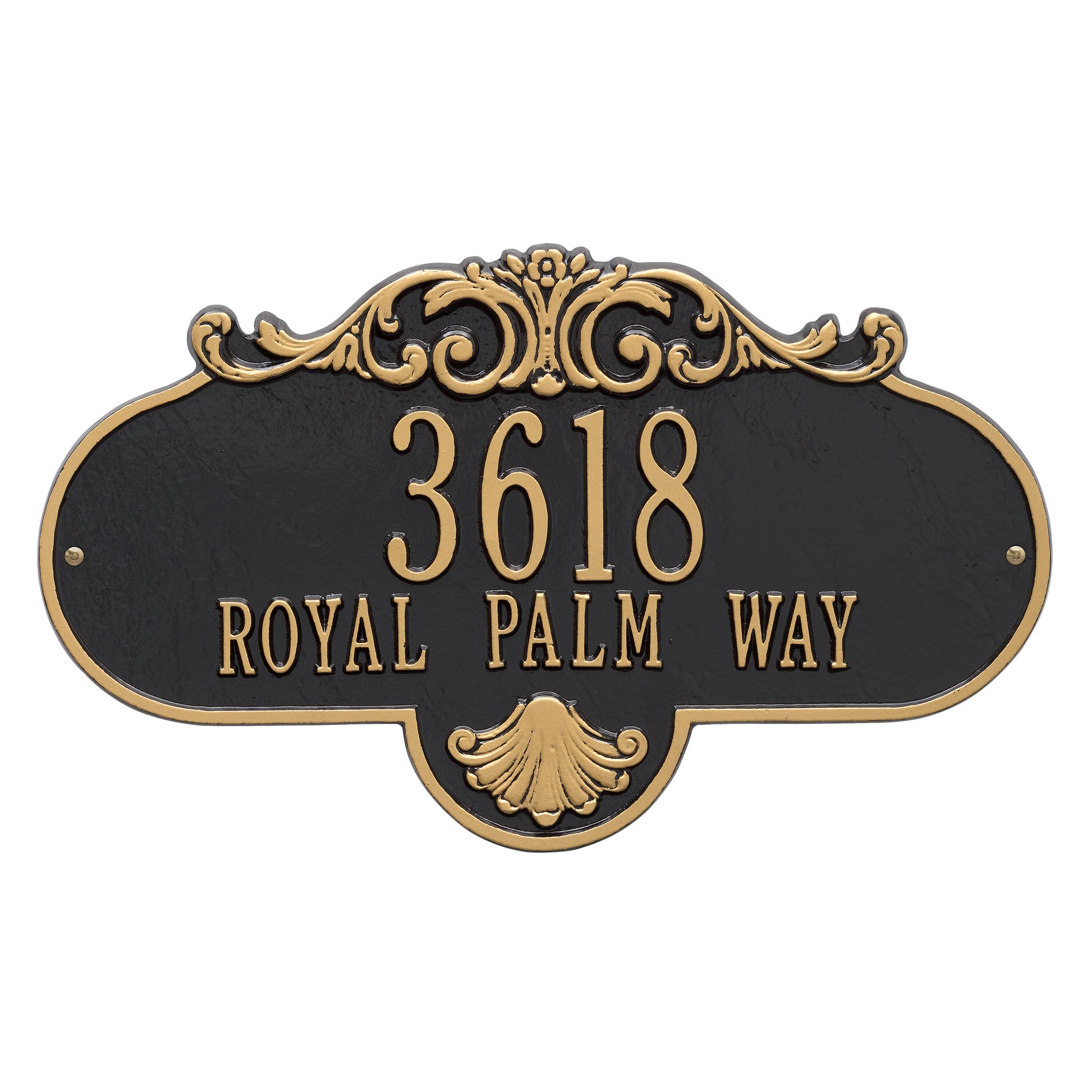 The Whitehall Products Rochelle Address Plaque ornately announces your address with a finely crafted scroll pattern.