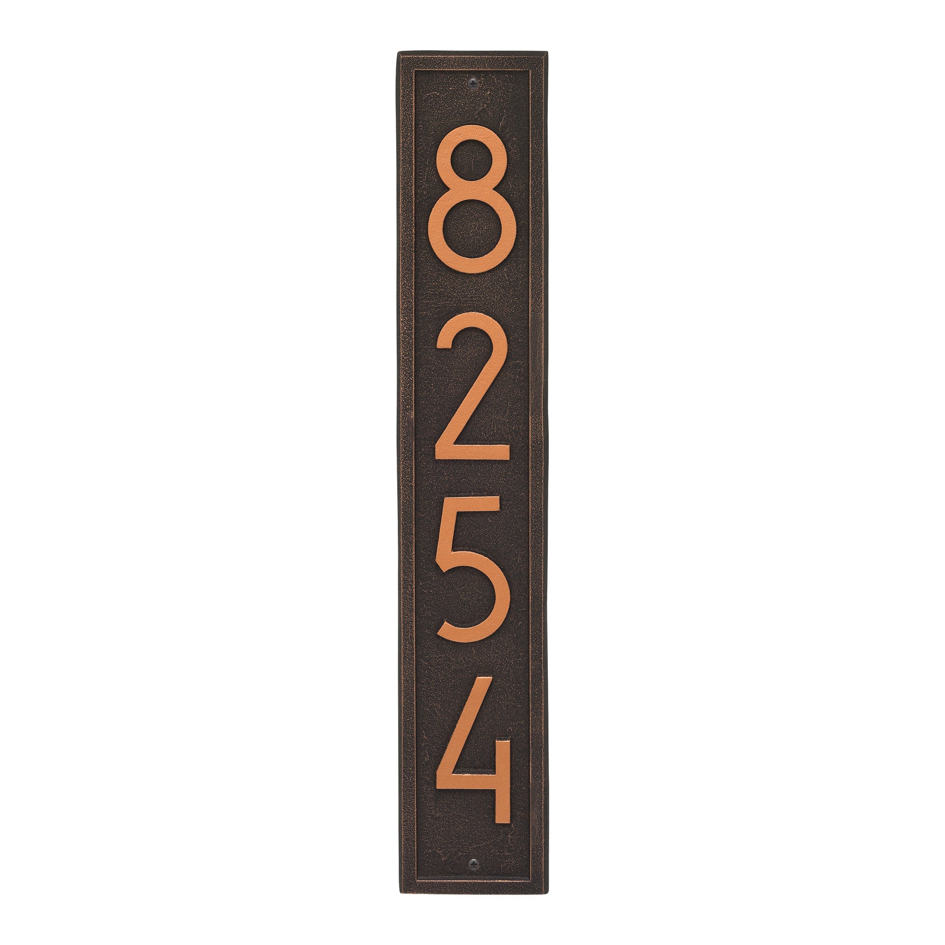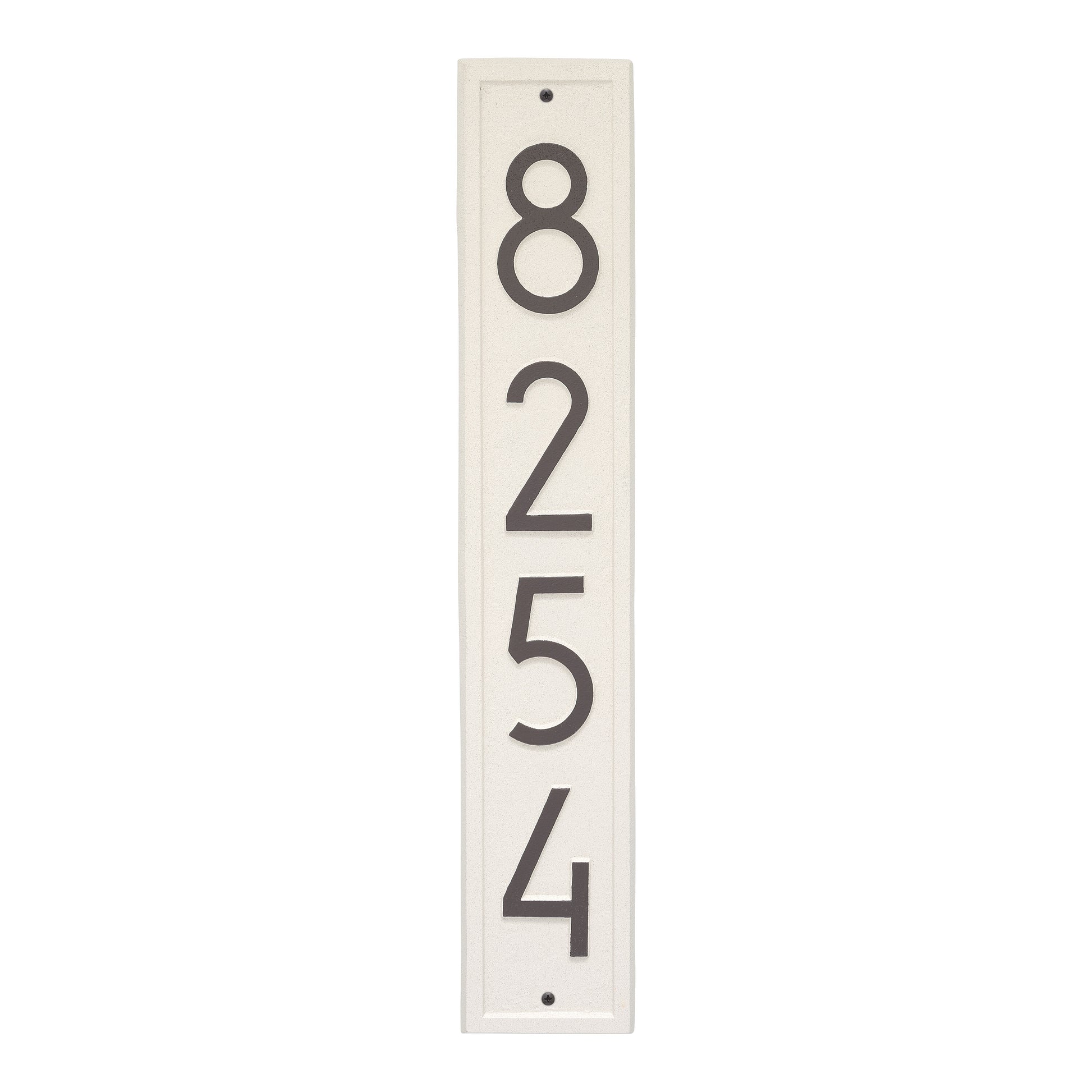 Ramp up your curb appeal with the Vertical Modern address plaque. The combination of a contemporary font and subtle border give this plaque its modern look. Whitehall address plaques are proudly handcrafted in the USA using American materials and labor. Whitehall address plaques are suitable for all exterior applications.